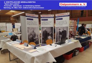 Der Verein Ostpommern e. V. nimmt am 9. Westfälischen Genealogentag teil. Aufgrund der Corona-Pandemie fand die Veranstaltung unter dem Motto „Dann eben online“ statt.